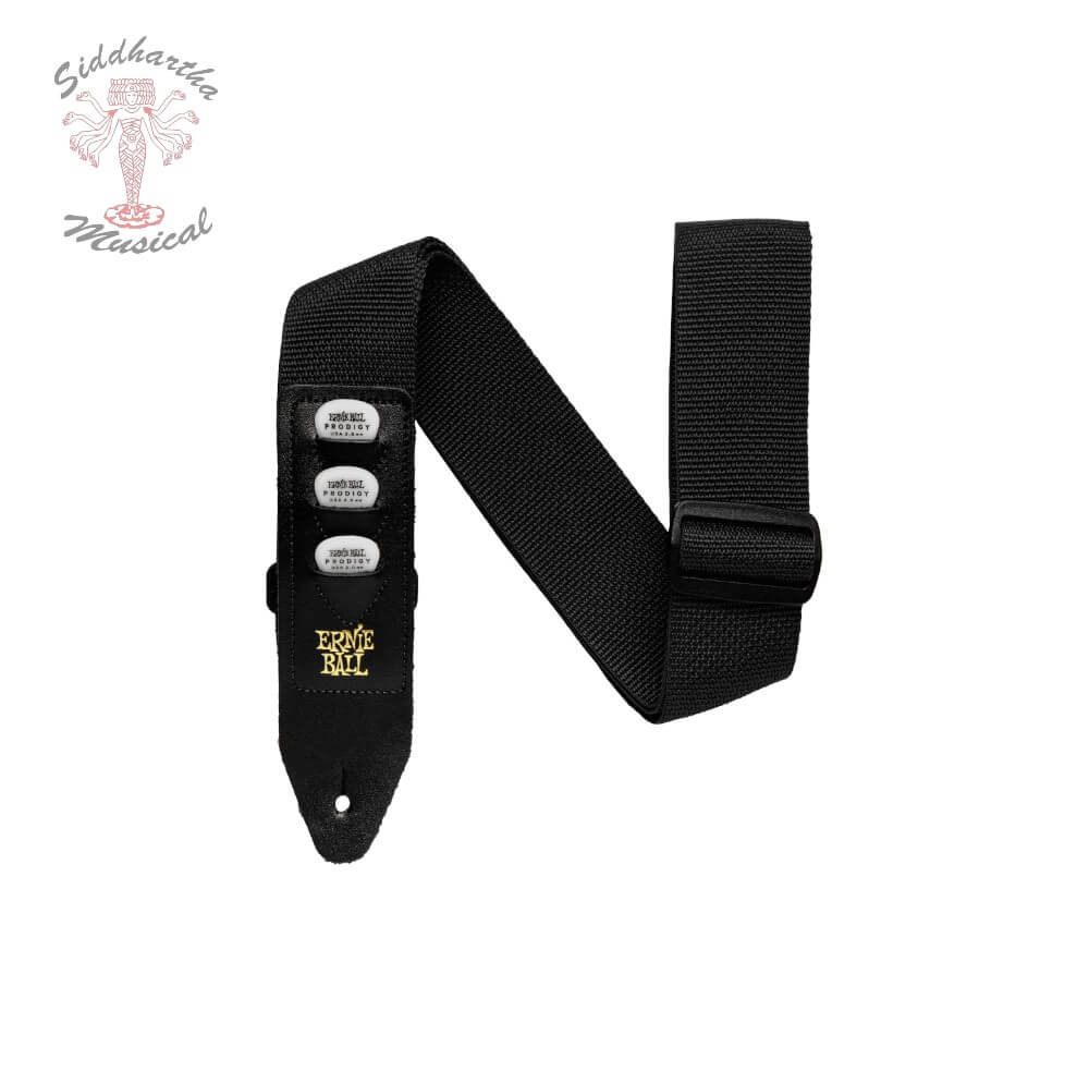 La correa de guitarra Pickholder de polipropileno está diseñada con un extremo de cuero extendido para acomodar cómodamente hasta tres púas en la parte inferior delantera. Los extremos de cuero están bordados en una cómoda cinta de polipropileno de 5 cm de ancho, lo que proporciona mayor durabilidad y resistencia. La longitud de la correa es totalmente ajustable para usos cortos o extra largos. La correa mide de 104 a 183 cm de largo.